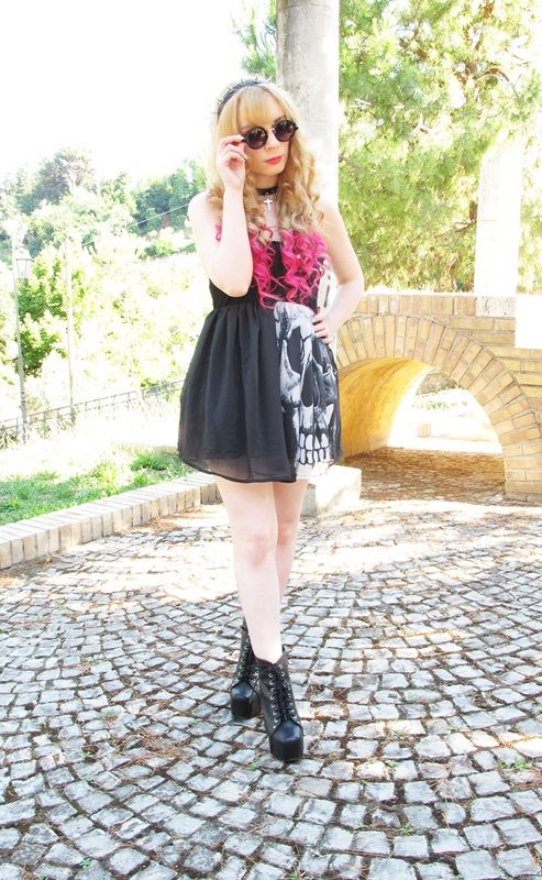 RispondiEliminae complimenti come al solito per gli outfit, l'abito col teschio è fichissimo X3